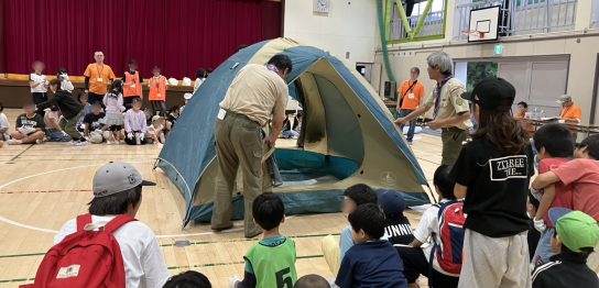 カブ隊の今年のキャンプテーマは「カブ隊、避難せよ!」避難所生活を再現・体験しまし
